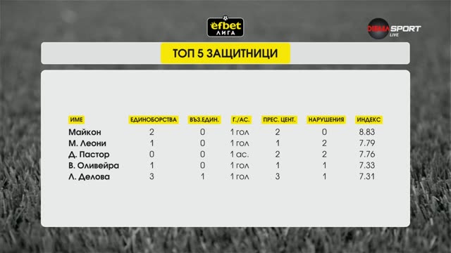Предаването представя най-добрите футболисти от последния кръг на efbet Лига. Водещият анализира представянето им, като изготвя класации по позиции и идеален отбор, опирайки се на статистически данни.