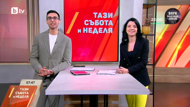Водещите Ванина Недкова и Митьо Маринов предлагат разнообразно политематично съдържание всяки уикенд сутрин от 7:30 до 11:00ч. Двамата представят авторски прочит на актуалните и любопитни теми от обществено-политическия живот в страната в "Тази събота и неделя" от новия дом на актуалното предаване – изцяло нов модерен студиен комплекс, който ще посреща всички събеседници и най-вълнуващите теми от седмицата.
