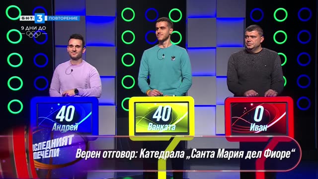 "Последният печели" е забавно-познавателно, семейно куиз шоу, в което участват четирима играчи. Състои се от три кръга с различни сфери на познанието, в които въпросите са с различна точкова стойност. След края на всеки кръг отпада по един участник, а победителят печели правото да се състезава и в следващия епизод и играе, докато някой друг не успее да го победи.