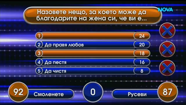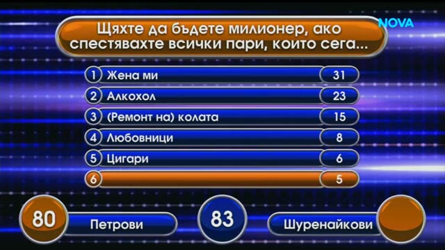 Във всеки епизод участват две семейства, които се състезават да отгатнат най-популярните отговори на въпроси, които са били зададени предварително на минимум 100 човека.Играта се състои от общо шест рунда, включително и най-популярния рунд – "Бързи пари".В първите пет рунда семействата се състезават помежду си, като се стремят да спечелят максимален брой точки.В началото на всеки рунд представители на двете семейства, след като чуят въпроса от водещия, се състезават кой ще натисне по-бързо бутона, за да получат правото да дадат първи предположение за най-популярния според тях отговор.Семейството, спечелило по-голям брой точки в първите пет рудна, става победител в съответния епизод и играе в шестия рунд от играта – "Бързи пари". В него двама играчи от семейството трябва да отговорят на пет бързи въпроса. Тяхната цел е да съберат максималния брой от 200 точки, за да спечелят допълнителни награди.Отборът победител продължава играта си в следващия епизод на шоуто, а победителите в пет поредни епизода прибавят към сумата, която са събрали, допълнителна сума от 5000 лв.За отбора, който е загубил надпреварата, има утешителна награда и, разбира се, емоциите от състезанието и телевизионното участие.